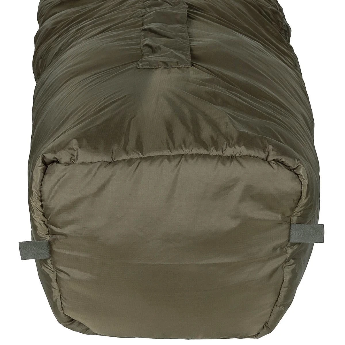Der Bundeswehr Schlafsack Mumie Allgemein 3 Seasons ist ein sehr beliebter und hochwertiger Mumienschlafsack mit 2-lagiger Füllung und weitem Temperaturbereich von -10 bis +15°C, so dass dieser ganzjährig zum Einsatz kommen kann. Der mittlere 2-Wege Reißverschluss ist außen mit einer Klettabdeckleiste und Innen mit einer gefütterten Abdeckleiste versehen. Das Kopfteil ist verstellbar und mit Kordelzug versehen und lässt sich somit ideal anpassen. Unten am Schlafsack befinden sich 2 Schlaufen zum Lüften und als Befestigung für Schlafsacküberzüge. Der Schlafsack wird im robusten Schlafsacküberzug mit Kordelzug geliefert.