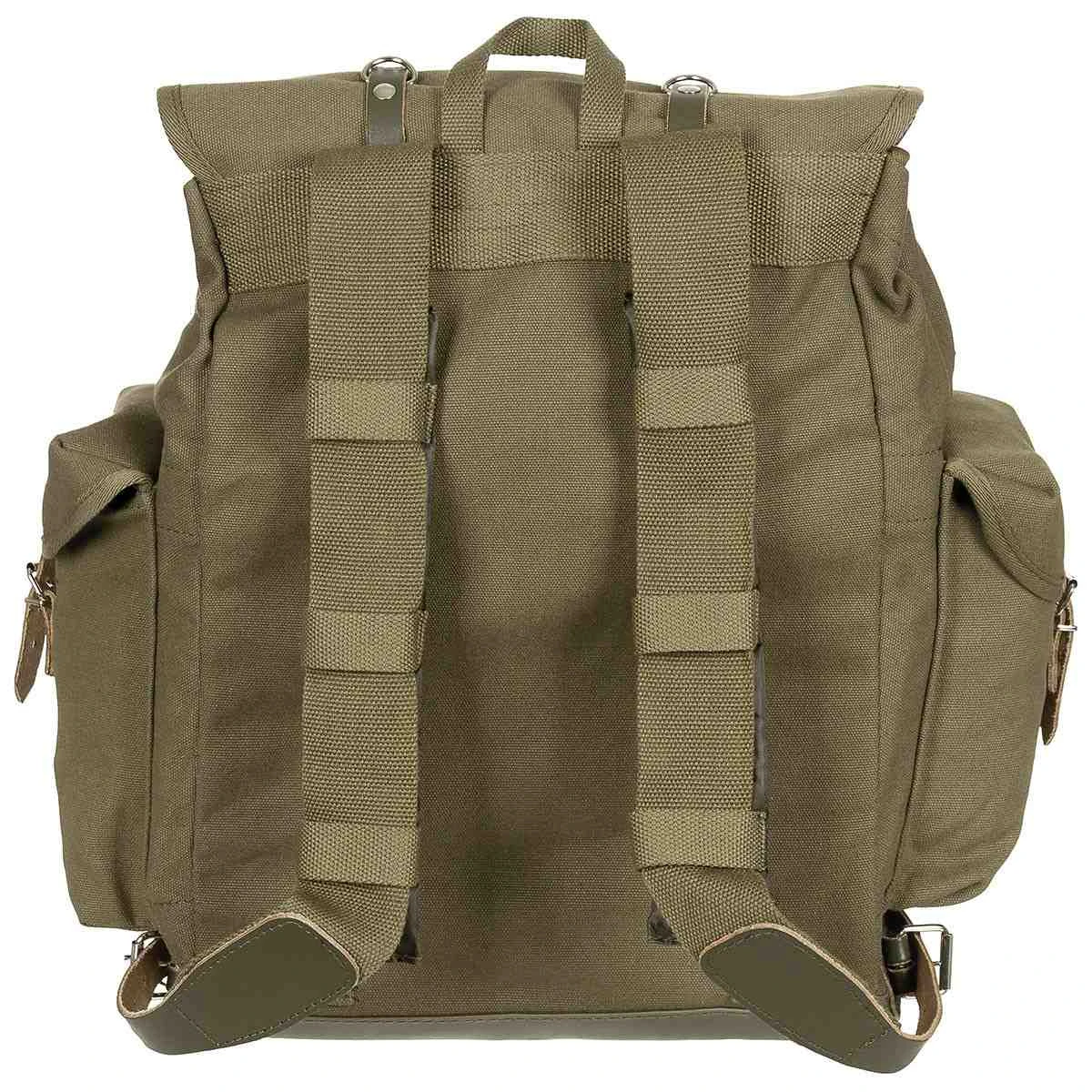 Das alte Modell des BW Gebirgsjäger Rucksack mit Lederriemen. Der Gebirgsrucksack ist mit großem Hauptfach, Kordelzug und Stoppern ausgestattet. Die Haupttasche und die Seitentaschen werden mit Lederriemen verschlossen. Der Boden ist aus stabilem, wasserfestem Polyvinylchlorid. Zwei gut gepolsterte Rückentragegurte sorgen für angenehmes Tragen auch bei Tagestouren.
