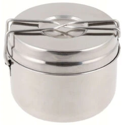 Das Edelstahl Outdoor Kochgeschirr 3-teilig von MFH beinhaltet eigentlich alles was man für ein Outdoor-Menü zu Zweit benötigt. Das CZ Kochgeschirr ist in Tschechien hergestellt und besteht aus 2 unterschiedlich großen Töpfen plus einem für beide Töpfe passenden Deckel, der auch als Teller verwendet werden kann. Das Kochset aus poliertem Edelstahl und abgerundeten Kanten lässt sich einfach reinigen. Die wegklappbaren Griffe sorgen für ein kompaktes kleines Packmaß und dienen zudem als Transportsicherung.
