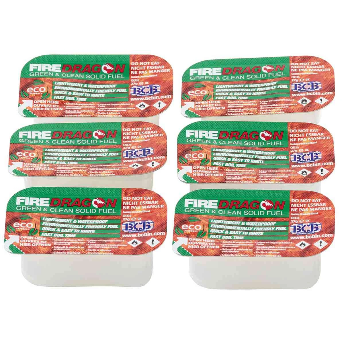 Der Fire Dragon Trockenbrennstoff Brenngel ist in 6 kleine Portionen zu 27 g abgepackt. Idealer Brennstoff für jeden Outdoor-Kocher, Trangia oder den originalen Fire Dragon Multi-Kraftstoff Kocher.