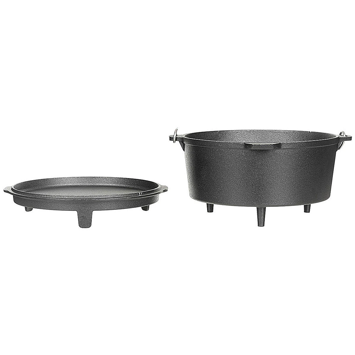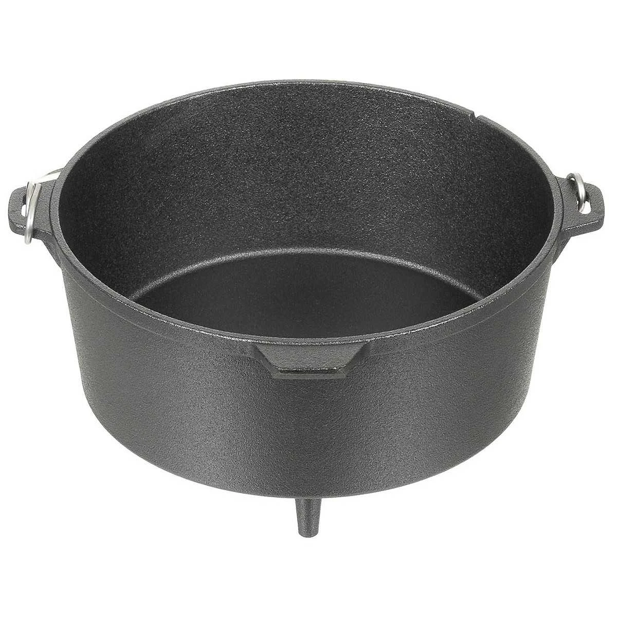 Der Fox Outdoor Feuertopf 5,7 aus Gusseisen wird oft auch als Dutch Oven bezeichnet und eignet sich hervorragend für das Kochen und Backen im Freien, auf dem Grill oder auch im Backofen. Der gusseiserne Dutch Oven besteht aus einem Topf mit 5,7 Liter Inhalt und einem passenden Deckel, die zusammen dank vieler perfekt durchdachter Details enorm vielseitig eingesetzt werden kann. So kann z.B. der Deckel umgedreht als praktische Pfanne verwendet werden. Der Feuertopf ist mit drei Füßen versehen und gibt so einen sicheren Stand auf jeden Untergrund. Deckel und Topf sind mit einer Thermometerdurchführung versehen, so dass die Temperatur geprüft werden kann, ohne den Deckel anheben zu müssen. Ein robuster Henkel am Feuertopf ermöglicht das sichere Heben und transportieren. Ein weiteres Highlight ist der erhöhte Rand des Deckels der ermöglicht, dass Glut oder Holzkohle auch auf dem Feuertopf platziert werden kann. So wird der Feuertopf von allen Seiten beheizt und eignet sich beispielsweise hervorragend zum Brot backen.