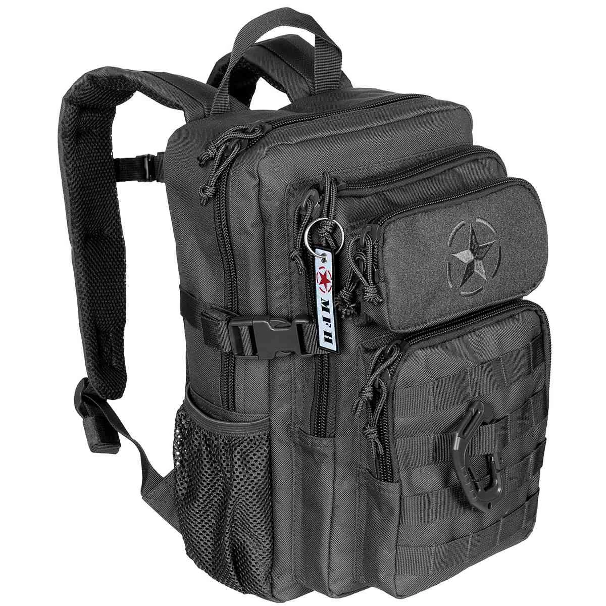 Wie der Vater so sein Youngster. Nach dem Motto gibt es den US Rucksack Assault nun auch in der Kinder-Version. Und die Kids-Variante mit 15 Liter Volumen steht dem größeren Modell in nichts nach. Rücken- und Schultergurte sind gut gepolstert, ergonomisch geformt und optimal auf Kindergrössen einstellbar. Für die Stabilität am Körper sorgt zusätzlich ein verstellbarer Brustgurt. Auf der oberen Fronttasche befindet sich eine große Klettfläche mit dem typischen MFH-Stern bestickt. Auf der unteren großen Fronttasche befinden sich Molle Schlaufen zum Anbringen von Molle-Erweiterungstaschen. Ein praktischer Karabiner in Rucksackfarbe ist bereits inklusive. Alle Taschen und diversen Fächer sind mit Reißverschluss verschließbar. Seitliche Kompressionsriemen dienen der Gepäckfixierung. Zudem befinden sich seitlich Netzfächer zum Verstauen von Trinkflaschen.