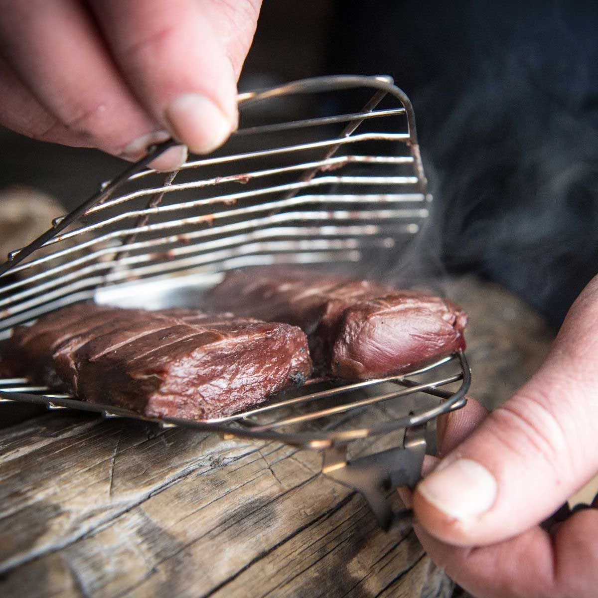 Mit dem Light my fire GrandPa´s Firegrill wird das Grillen immer und überall zum Kinderspiel. Der faltbare Grillrost mit einer Grösse von ca. 15,6×16,5×2,5cm wird einfach an einen beliebigen, aufgesammelten Stock geklemmt und der Grillspaß kann beginnen. Jedes beliebige Grillgut vom frisch gefangenen Fisch über Gemüse, Fleisch und Toast wird einfach in den Faltrost gelegt und über der Glut oder auch dem offenen Feuer gegrillt. Die smarte Konstruktion aus Edelstahl lässt die den Rost auf nahezu jeden beliebigen Stockdurchmesser klemmen. Aufgeklappt kann der Faltgrill auch als normaler Grillrost benutzt werden. GrandPa´s Firegrill aus rostfreiem Edelstahl ist leicht zu reinigen und zudem spülmaschinenfest.