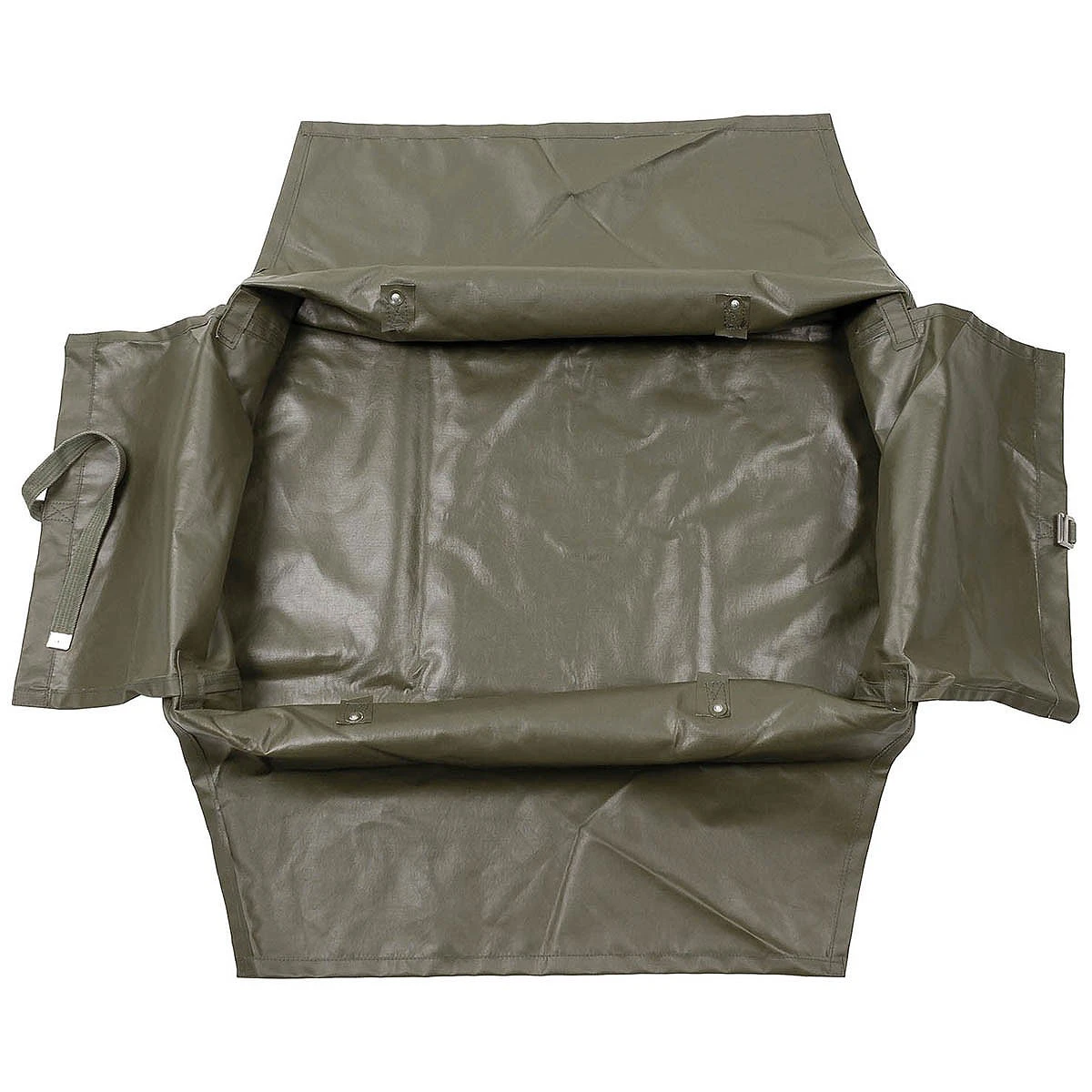 Der Orig. Transport- und Kleidersack gebr. der Schweizer Armee hat eine Grösse von 82 x 40 x 20 cm. Das gummierte Material ist wasserdicht und ist damit ideal zum Lagern oder Transport von Kleidung o.ä. geeignet. Durch seine Flache Bauweise können mehrere Transporttaschen übereinander gestapelt werden. Die Tasche ist mit 3 Verschlussriemen (1x längs, 2x quer) aus Baumwolle ausgestattet, mit denen sich die Säcke gut komprimieren lassen. Die Taschen sind gebraucht, es werden aber nur geprüfte Taschen versendet, die zu 100% Einsatzfähig sind.