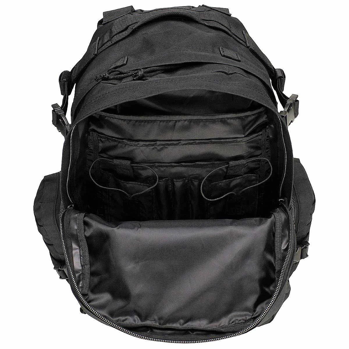 Der Tactical Rucksack 5 Full Modular von MFH ist dank seiner Modularen Bauweise sehr vielseitig einsetzbar. Zusätzlich bieten die vielen Molle-Schlaufen genug Spielraum um den Rucksack weiter zu personalisieren und an den eigenen Geschmack und Einsatzzweck zu erweitern. Vor allem das sehr überlegt gestaltete, und komplett aufklappbare Hauptfach lässt kaum Wünsche offen. Hierin sind Öffnungen Trinkschlauch, Gerätekabel, integrierte Kompressionsriemen und mehr verbaut. Neben dem großen Hauptfach stehen 4 weitere kleine Taschen im Seiten- und Frontbereich ur Verfügung. Der Rücken und der Hüftgurt sind sehr gut gepolstert, so dass auch längere Touren mit viel Gewicht bequem und rückenschonend möglich sind. Insgesamt verfügt der Rucksack über 45 Liter Fassungsvermögen für verschiedene Utensilien und Ausrüstungsgegenstände.
