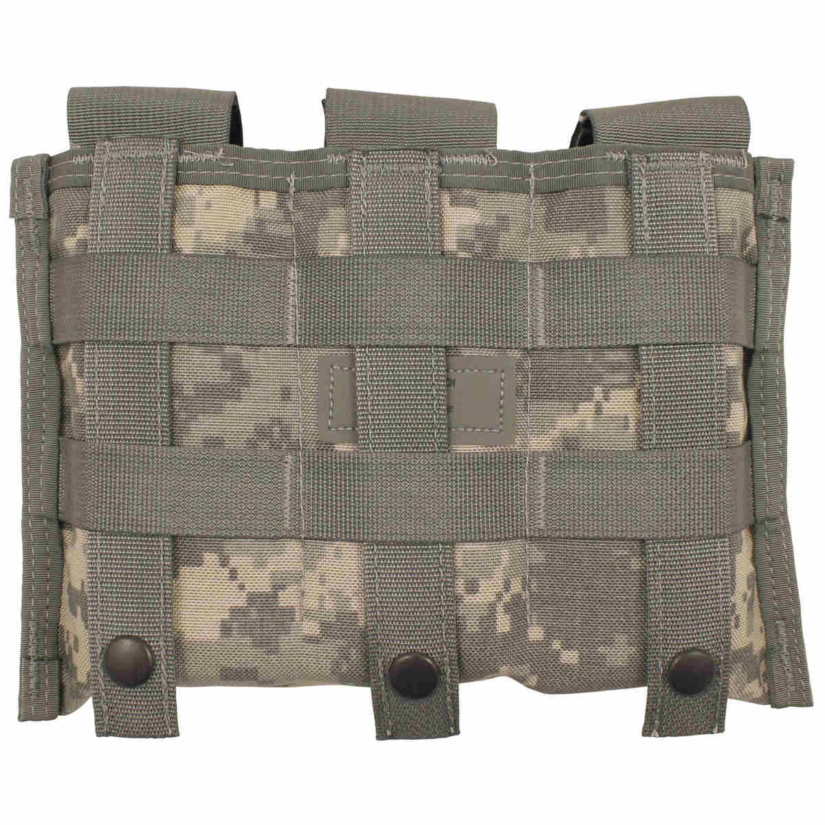 Die US Army Molle Magazintasche 3-fach in der Farbe at-digital hat eine Grösse von 26x18x3,5cm und bietet Platz für 3 Magazine. Die 3 Magazinfächer haben jeweils eine Grösse von 5,5×3,5x16cm. Die Original Tasche der US Army ist aus 100% Cordura hergestellt und ist daher nahezu unverwüstlich. 3 Molleschlaufen auf der Rückseite lassen die Tasche perfekt an jeden Molleträger wie Weste, Rucksack, Plattenträger etc. anbringen. Per Druckknopfverschluss werden die Magazine sicher in die Tasche verstaut, können aber über die Lasche am Deckel auch blitzschnell geöffnet werden. Die Vorderseite der Tasche ist wiederum mit Molleschlaufen versehen, an die weiteres Mollezubehör angehängt werden kann.