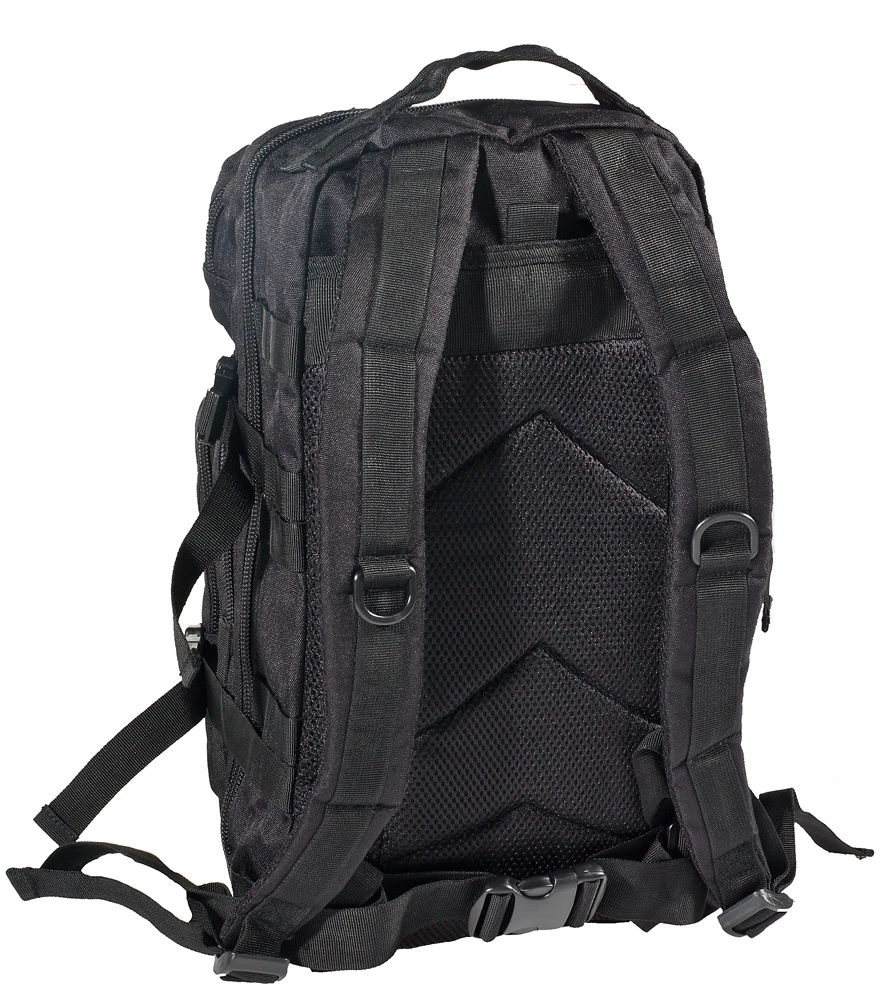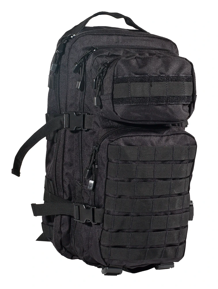 Der Rucksack Molle Assault I von stockA&B bietet mit zwei Hauptfächer und 2 Frontfächern, je mit Reißverschluß, Platz für Ein-Tagestouren. Die Vorderseite bietet viele Molleschlaufen zum Anbringen mehrerer zusätzlicher Molletaschen. Seitliche Zurrbänder sichern und passen den Rucksack an den Inhalt an